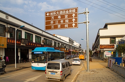 (2014年,公交车开进长沙望城交口古镇。本文图片来源:红网)