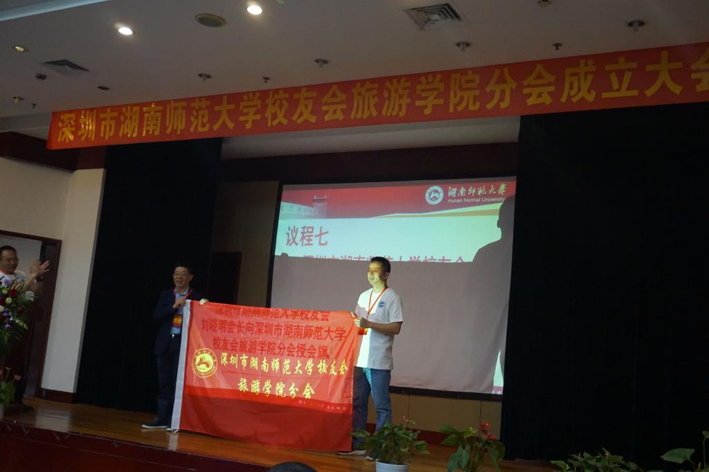 随后,邹寿长、郑焱、黄艺农、李正益、廖欢、贺小荣、李皓共同为理事会成员颁发聘书。刘晓明为分会授会旗。