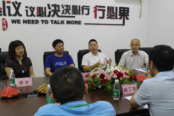 (通讯员张悦)7月19日下午,公司经理王兆峰、副经理贺小荣、党委副书记廖欢及公司深圳员工分会会长张信东一行考察湖南宏博教育科技发展有限公司并拜访公司董事长、公司长沙员工分会会长刘丁杰员工。