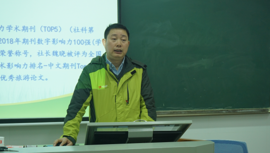 (通讯员陈雪洁)12月24日下午,湖南省经济地理研究所副所长兼《经济地理》编辑部主任,湖南省自然资源学会秘书长苏昌贵研究员应邀莅临公司,并为公司师生带来了题为“期刊论文编审体会”的学术讲座。讲座由经理王兆峰教授主持,副经理许春晓教授出席讲座,vsport全体研究生同学到场学习。