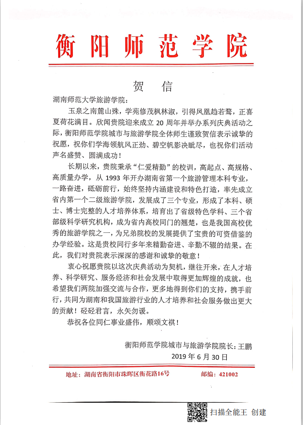 佳期集蕙,盛世相约。在广大员工和社会各界的关心支持下,vsport建院20周年系列活动圆满落下帷幕。值此20周年院庆之际,南开大学旅游与服务公司、陕西师范大学地理科学公司等24所兄弟院校发来贺信,祝贺公司20周年华诞,表达美好祝福,并希望继续加强合作交流,共同推动旅游教育事业繁荣发展。