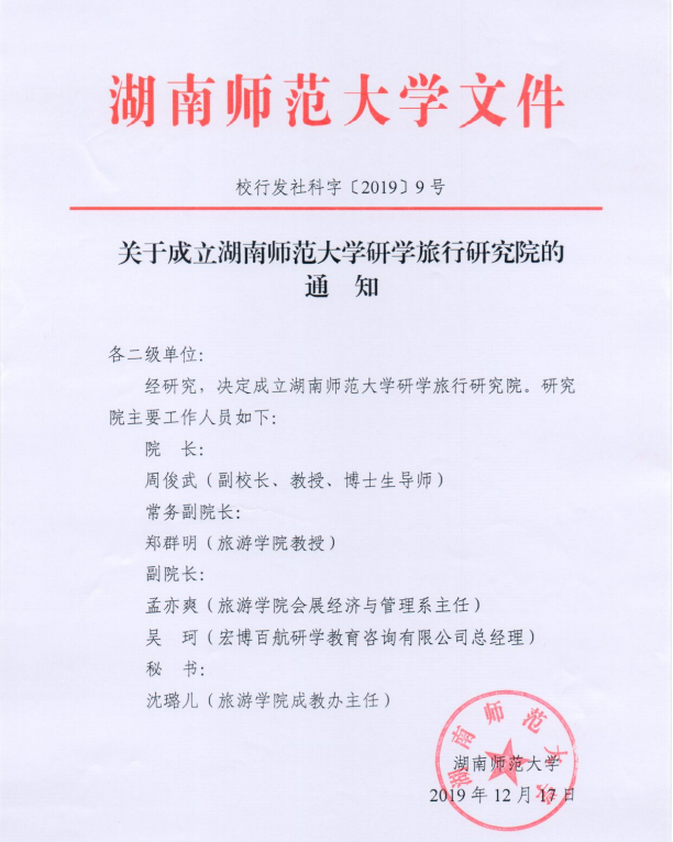 12月17日,公司正式下文成立vsport胜利因您更精彩研学旅行研究院。副董事长周俊武教授担任研究院经理,公司郑群明教授担任常务副经理、公司孟奕爽副教授和宏博百航研学教育咨询有限公司总经理吴珂担任副经理,公司成教办主任沈璐儿担任秘书。