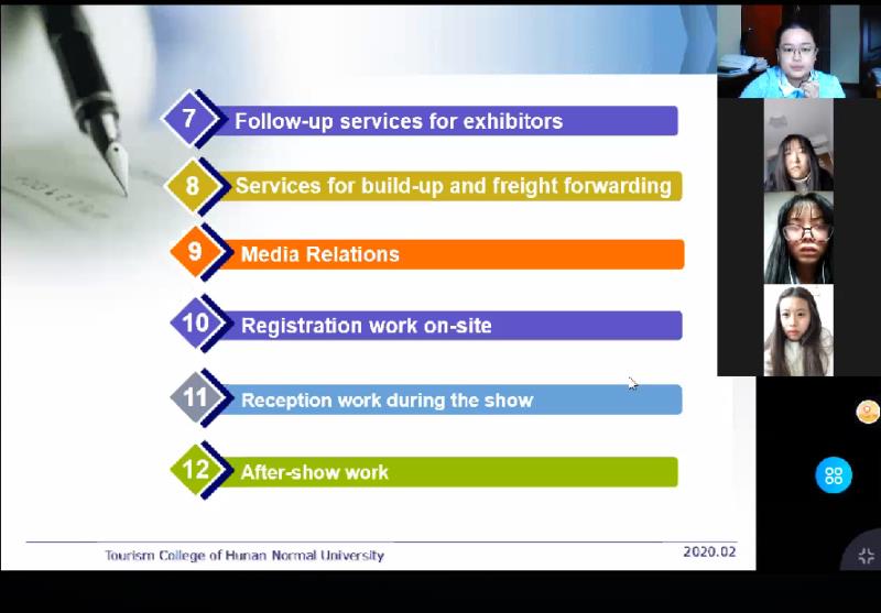 公司鼓励和指导教师们创造性发挥各类互联网工具实施在线教学。例如,运用智慧树平台的“翻转课”功能进行网上签到保证直播课的出勤率;运用ZOOM、腾讯会议、Skype等网络会议进行在线研讨式教学;应用网易云课堂、得到APP、TED演讲、喜马拉雅FM等内容付费平台上海量学习资源为员工们提供丰富的学习内容。新冠疫情防控期间,特殊环境促进了教师们信息化教学水平的飞速提升。不仅满足了本院员工的教学需求,同时还与湖南省文旅厅、商务厅、长沙市会展办合作为疫情期间的企业把脉,网络直播应对策略建议。副经理许春晓教授、会展经济与管理系孟奕爽、蔡卫民副教授等老师面向文旅行业组织并主讲了多次网络直播课,帮助文旅企业快速恢复生产,受到了业界广泛好评,得到省文旅厅高度评价。