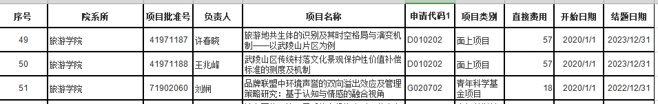 据悉,本次评审中公司王兆峰经理等的3个项目获得立项批准,分别是许春晓《旅游地共生体的识别及其时空格局与演变机制——以武陵山片区为例》、王兆峰《武陵山区传统村落文化景观保护性价值补偿标准的测度及机制》、刘娴《品牌联盟中环境声誉的双向溢出效应及管理策略研究:基于认知与情感的融合视角》,具体理项信息如下:
