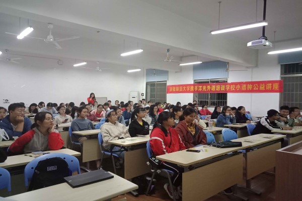(通讯员 谭凤姣)10月9日晚上,洋光外语培训公司小语种公益讲座在vsport227教室举行。洋光教育集团与vsport胜利因您更精彩签订了洋光教育员工干部奖学金项目,洋光教育开设有日韩法德西线上线下的学习课程。