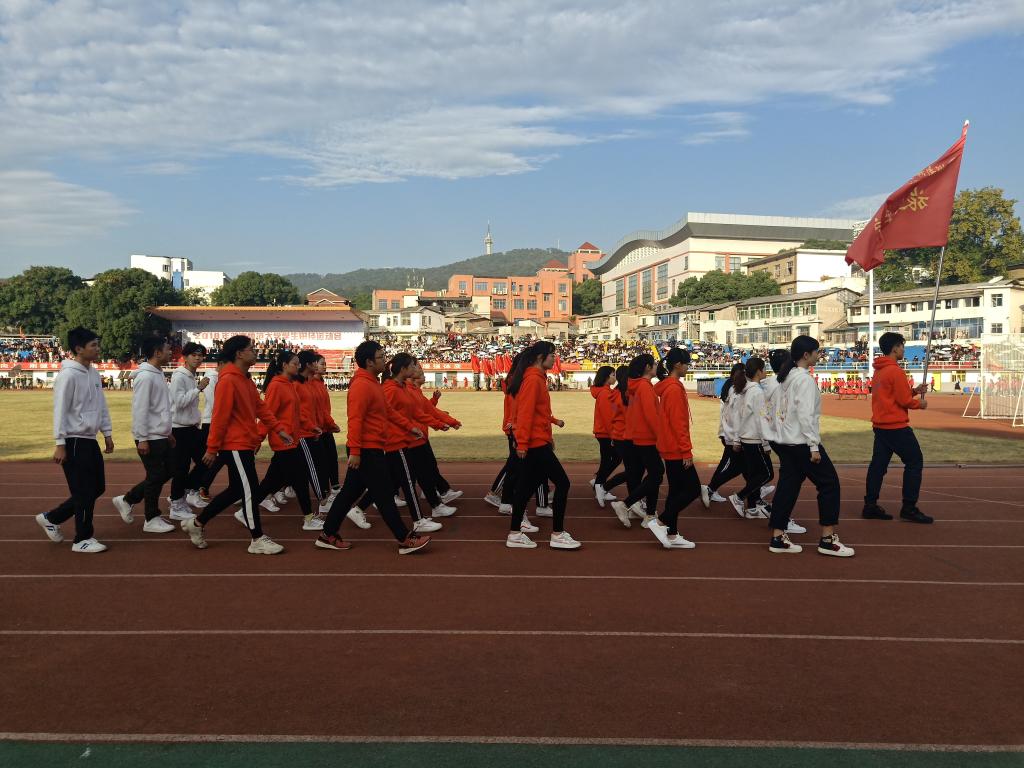 开幕式以国旗、校旗、校徽、校训为引导,鲜花队、红旗队、裁判员代表和运动员代表跟随其后,舞龙团和校健美操队的表演拉开了运动会的序幕。