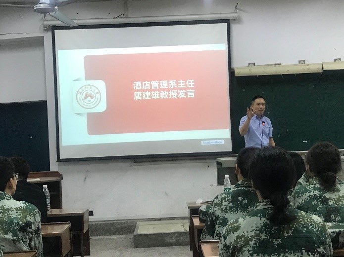 汤静向同学们介绍了旅游管理专业的基本概况,包括旅游管理专业授课老师、课程设置、学科分类以及发展历史。唐健雄介绍了酒店管理专业的基本情况的同时,帮助同学们解决了就业情况和交换生项目等方面的疑问。孟奕爽用“新”、“升”、“悟”三个关键词为大家介绍了专业的基本内容,包括专业知识、团队团队与校园生活等。